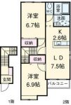 2010December 67,000 yen, 2LDK, Second floor / 2-story, 58.64 sq m | ||