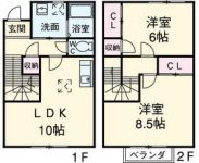 1991September 45,000 yen, 2LDK, 1st floor / 2-story, 50 sq m | ||