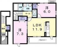 2008July 66,000 yen, 2LDK, Second floor / 2-story, 60.33 sq m | |