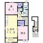 2006February 59,000 yen, 2LDK, Second floor / 2-story, 56.6 sq m | |