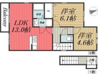 2000December 61,000 yen, 2LDK, 1st floor / 2-story, 45.36 sq m | |