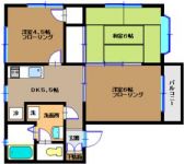 1985March 40,000 yen, 2DK, Second floor / 2-story, 32.23 sq m | ||