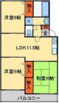 1990October 66,000 yen, 3DK, Second floor / 2-story, 58 sq m | |