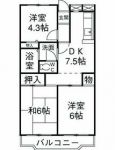 1990April 65,000 yen, 2DK, Second floor / Three-story, 41.9 sq m | ||