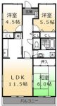 45,000 yen, 2DK, 1st floor / 2-story, 34.68 sq m |