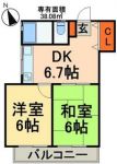 46,000 yen, 2DK, Second floor / 2-story, 38.08 sq m |