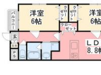 1995October 44,000 yen, 2DK, 3rd floor / Three-story, 38.88 sq m | ||