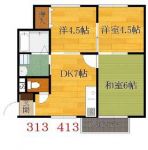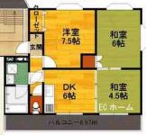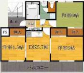 45,000 yen, 3DK, Second floor / 2-story, 59.26 sq m