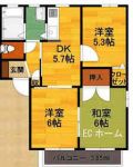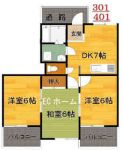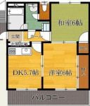 57,000 yen, 2LDK, Second floor / 2-story, 57 sq m