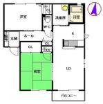 60,000 yen, 2LDK, Second floor / 2-story, 61.73 sq m | Fukuoka Prefecture Buzen Oaza Shaguma