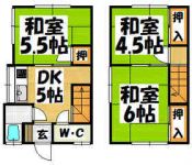 45,000 yen, 3DK, 1-2 floor / 2-story, 50 sq m |