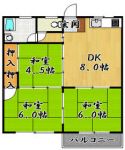 76,000 yen, 3LDK, 4th floor / 6-story, 66.38 sq m |