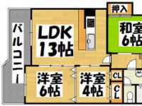 1976July 47,000 yen, 2LDK, 3rd floor / 5-story, 46.75 sq m | |