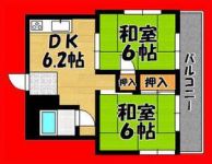 1990March 55,000 yen, 3DK, Second floor / 4-story, 60.3 sq m | |