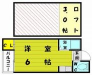 1992July 30,000 yen, One-room, Second floor / 2-story, 19 sq m | |