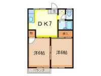 1989October 38,000 yen, 2DK, Second floor / 2-story, 39.5 sq m | Fukuoka Prefecture Kurate gun Kotake Oaza red background