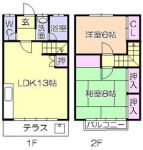 1995April 45,000 yen, 2LDK, 1st floor / 2-story, 57 sq m | ||