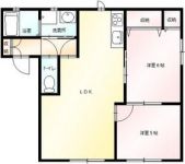 45,000 yen, 2LDK, Second floor / 2-story, 58.53 sq m |
