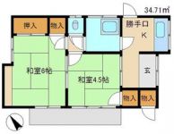 35,000 yen, 2K, Bungalow, 34.71 sq m |