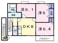 60,000 yen, 3DK, Second floor / 2-story, 62.69 sq m |