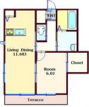 60,000 yen, 1LDK, 1st floor / 2-story, 46.06 sq m |