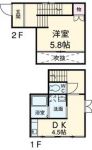 58,000 yen, 2LDK, Second floor / 2-story, 55 sq m |