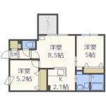 63,000 yen, 2LDK, Second floor / 4-story, 48.24 sq m | Sapporo, Hokkaido Toyohira-ku Tsukisamuhigashisanjo 4