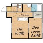 56,000 yen, 2LDK, 1st floor / 4-story, 46.92 sq m | Sapporo, Hokkaido Toyohira-ku, waterwheel-cho, 7