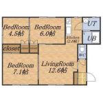 1983April 60,000 yen, 3LDK, Second floor / 4-story, 51.97 sq m | Sapporo, Hokkaido Toyohira-ku Tsukisamu Higashiichijo 6