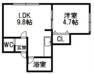 50,000 yen, 1LDK, Second floor / 4-story, 38.29 sq m | Sapporo, Hokkaido Toyohira-ku Hiragishisanjo 17