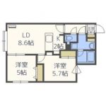66,000 yen, 2LDK, 3rd floor / 4-story, 47.46 sq m | Sapporo, Hokkaido Toyohira-ku Hiragishinijo 8
