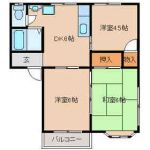 1993March 50,000 yen, 2LDK, Second floor / 2-story, 44.71 sq m | |