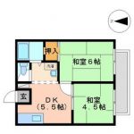 1990April 40,000 yen, 2DK, Second floor / 2-story, 34.02 sq m | |