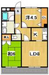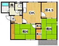 1980 45,000 yen, 2DK, 3rd floor / Three-story, 41.04 sq m | |