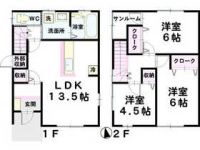 2009September 95,000 yen, 3LDK, 1-2 floor / 2-story, 77.84 sq m | |