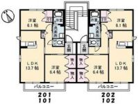 2004October 61,500 yen, 2LDK, 1st floor / 2-story, 61.6 sq m | |