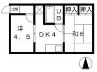 1989January 45,000 yen, 2DK, Second floor / 2-story, 47.24 sq m | ||