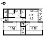 1991March 76,000 yen, 2DK, 3rd floor / 4-story, 43.74 sq m | Kyoto, Kyoto Prefecture Ukyo-ku, Saganohiraki cho
