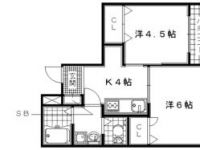 45,000 yen, 2DK, Second floor / 2-story, 35 sq m |