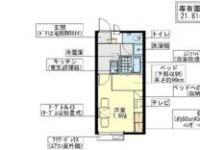 38,000 yen, 1K, 1st floor / 2-story, 21.81 sq m