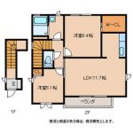 2005May 44,000 yen, 1LDK, Second floor / 2-story, 46.49 sq m | |