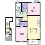 61,000 yen, 2LDK, Second floor / 2-story, 62.45 sq m |