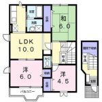 1995October 45,000 yen, 2DK, Second floor / 2-story, 44.72 sq m | |