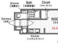 2012August 78,500 yen, 1DK, 12th floor / 15-storey, 31.39 sq m | |