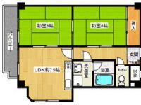 1990January 75,000 yen, 3DK, 9 floor / 11-storey, 56.72 sq m | |