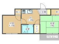 57,000 yen, 2DK, Second floor / 4-story, 36 sq m |