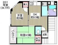 2000January 60,000 yen, 2DK, Second floor / Three-story, 34.7 sq m | ||