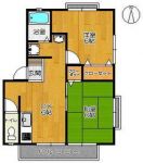 43,000 yen, 2DK, Second floor / 2-story, 33 sq m |