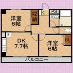 77,000 yen, 2DK, Second floor / 2-story, 46 sq m |