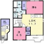 45,000 yen, 2DK, Second floor / 2-story, 40 sq m |